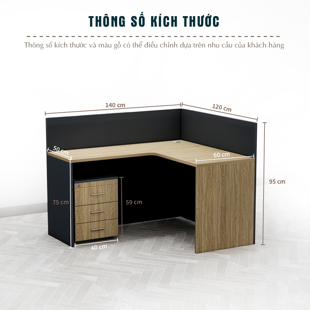 Kiểu dáng hiện đại: Màu sắc vân gỗ sáng kết hợp đen nhám tạo nên sự sang trọng, phù hợp nhiều phong cách văn phòng.