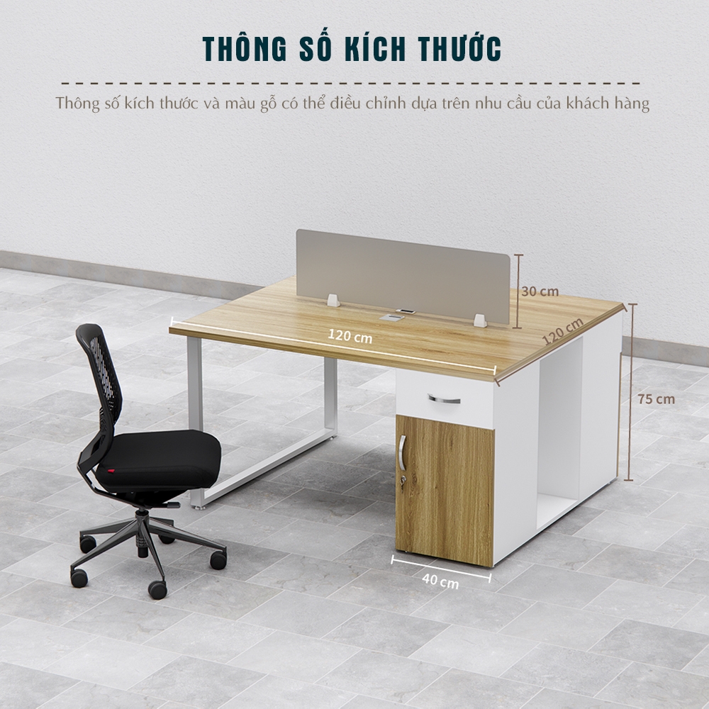 Với phong cách hiện đại và gam màu trung tính, mẫu bàn này dễ dàng kết hợp cùng ghế xoay lưới, vách ngăn di động hoặc hệ tủ hồ sơ chuyên dụng để tạo nên không gian làm việc chuyên nghiệp và đồng bộ.