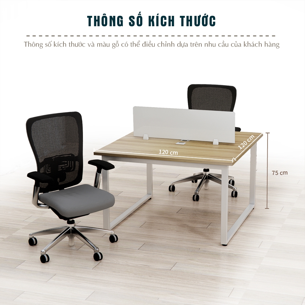 Mặt bàn: Vân gỗ sáng tự nhiên, phối màu hiện đại