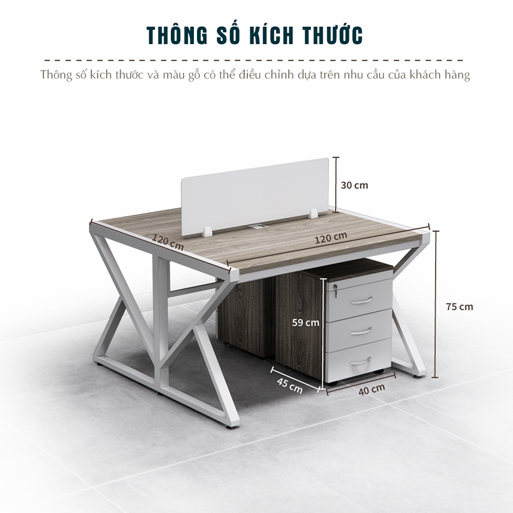 Vách ngăn: Cao 30cm, giúp phân tách không gian làm việc cá nhân hiệu quả.