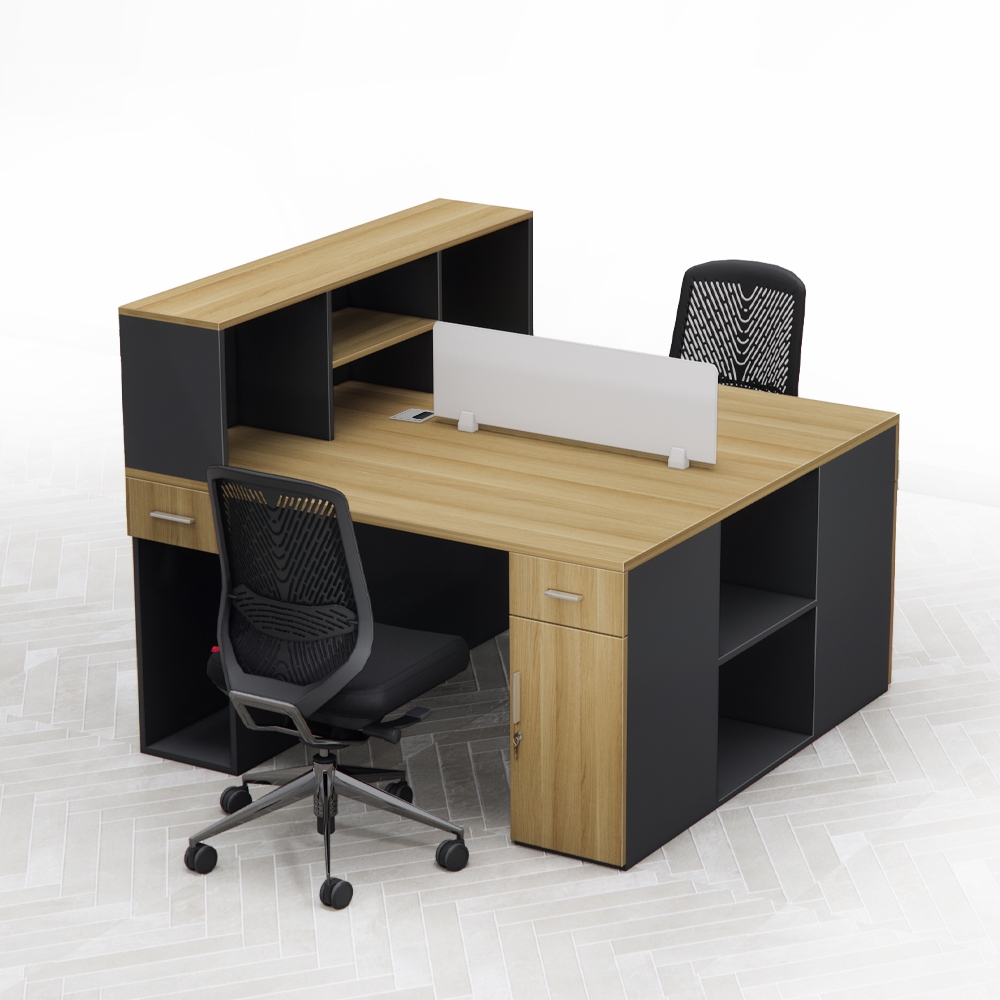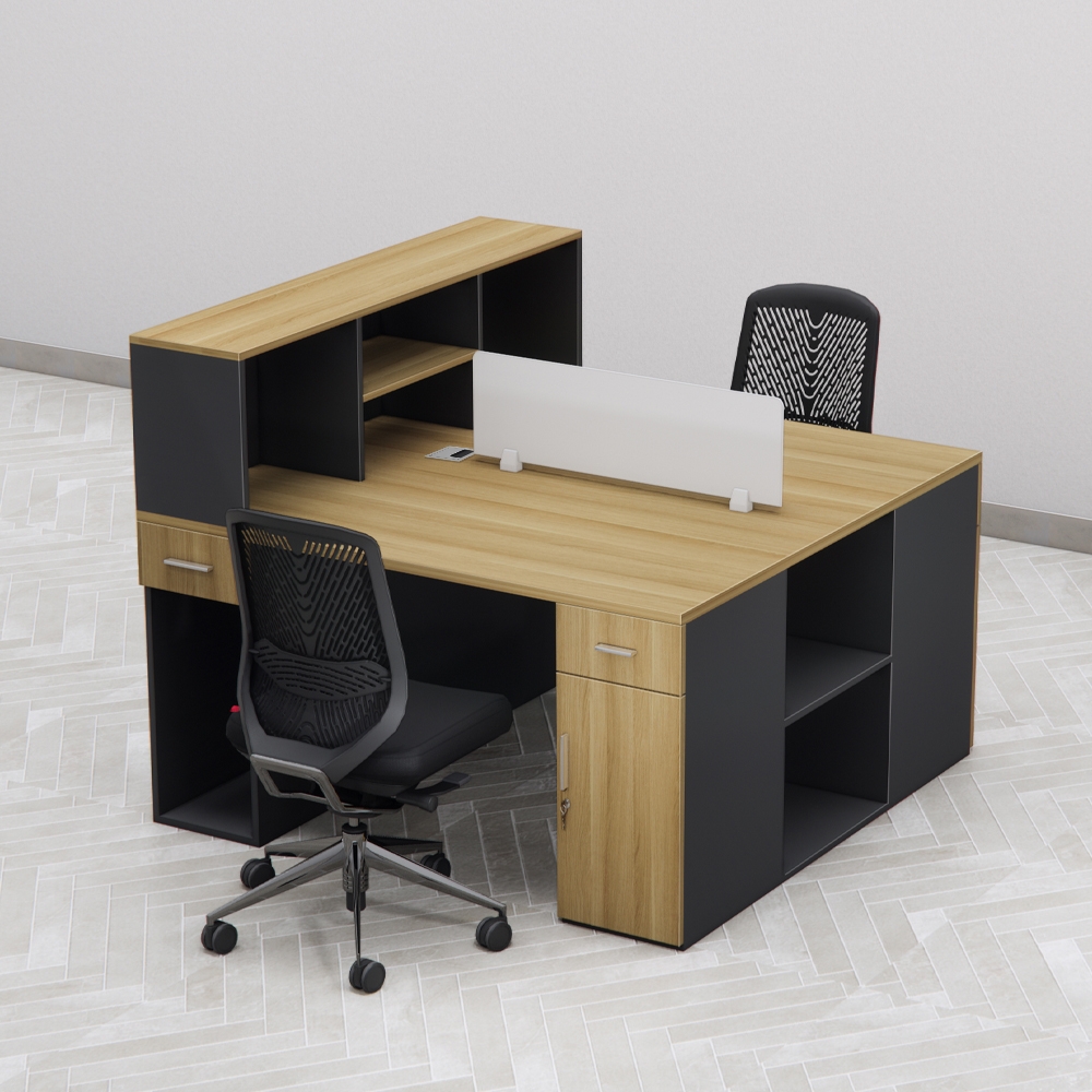 Không gian lưu trữ tối ưu: Bàn được tích hợp tủ cá nhân, kệ sách và ngăn kéo tiện lợi, giúp tối ưu hóa không gian lưu trữ và đảm bảo sự gọn gàng.