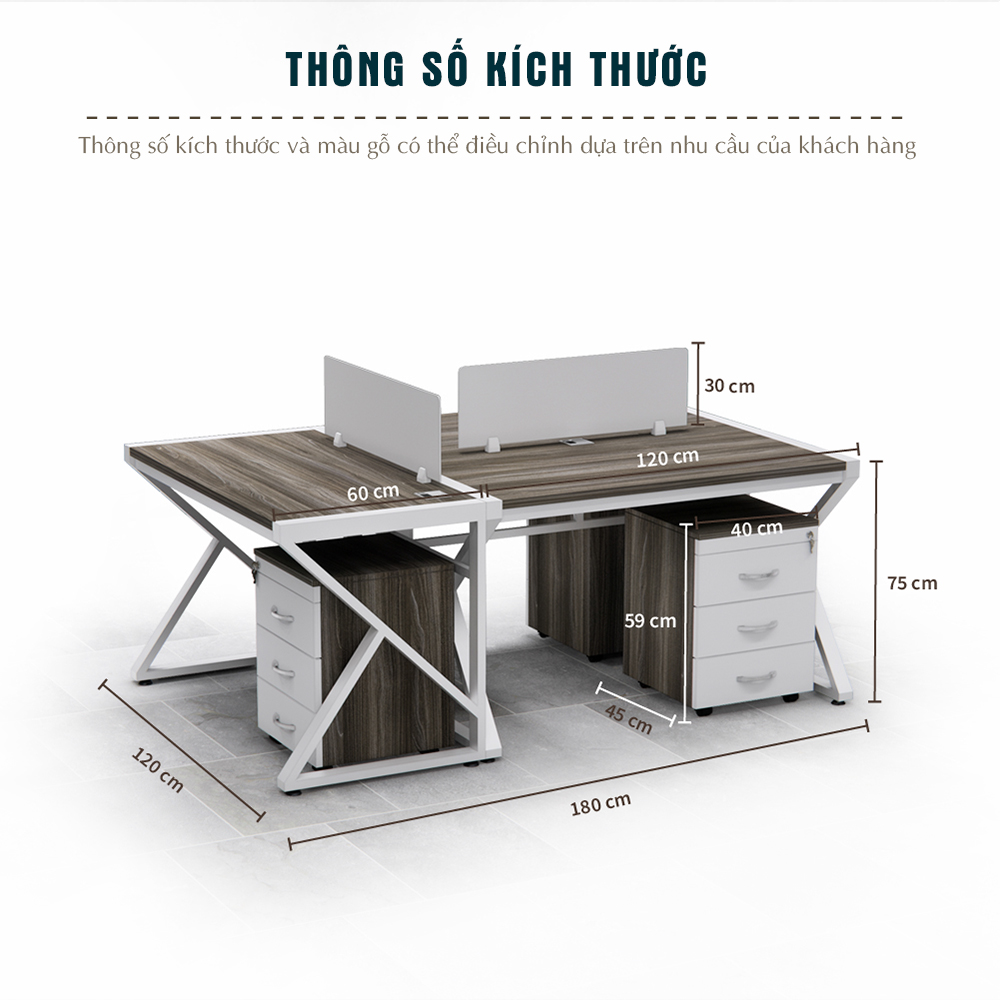 Kích thước từng mặt bàn: 120cm × 60cm