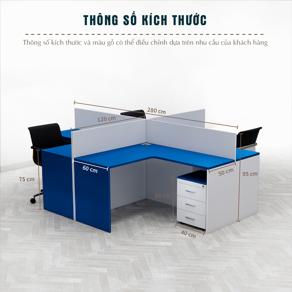 Vách ngăn: Cao 95cm, phân tách chỗ ngồi hiệu quả, tăng tính riêng tư