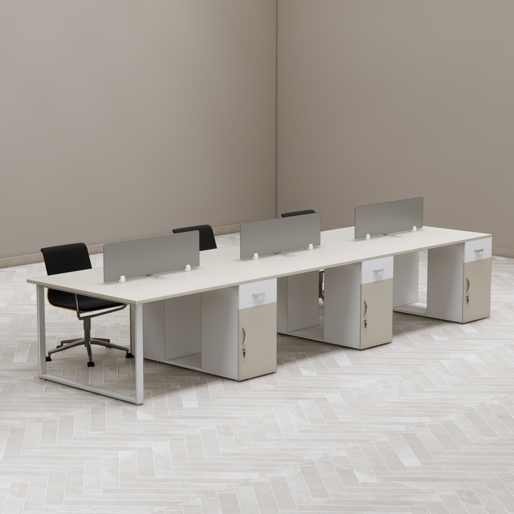 Cụm bàn 6 chỗ: Phù hợp với các không gian làm việc mở, giúp tăng tương tác nhóm nhưng vẫn đảm bảo sự tập trung cá nhân