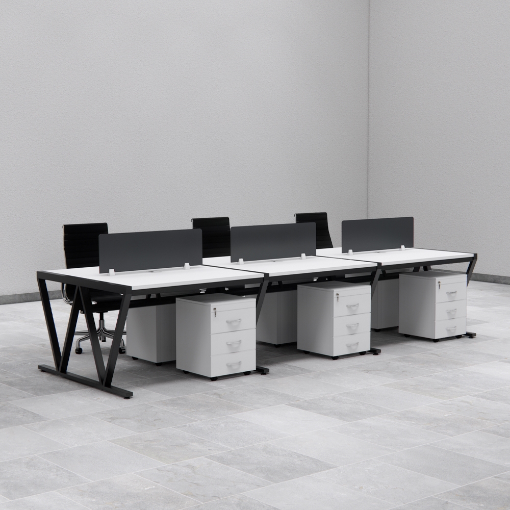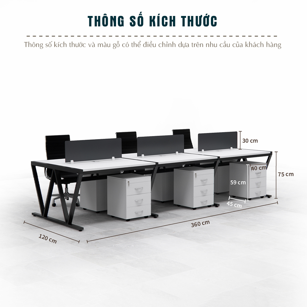 Thiết kế dạng cụm 6 chỗ liền khối, phù hợp cho team hoặc phòng ban.