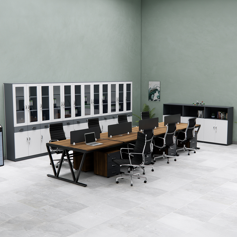 Thích hợp với không gian làm việc mở, giúp tiết kiệm diện tích và tạo sự gắn kết trong làm việc nhóm