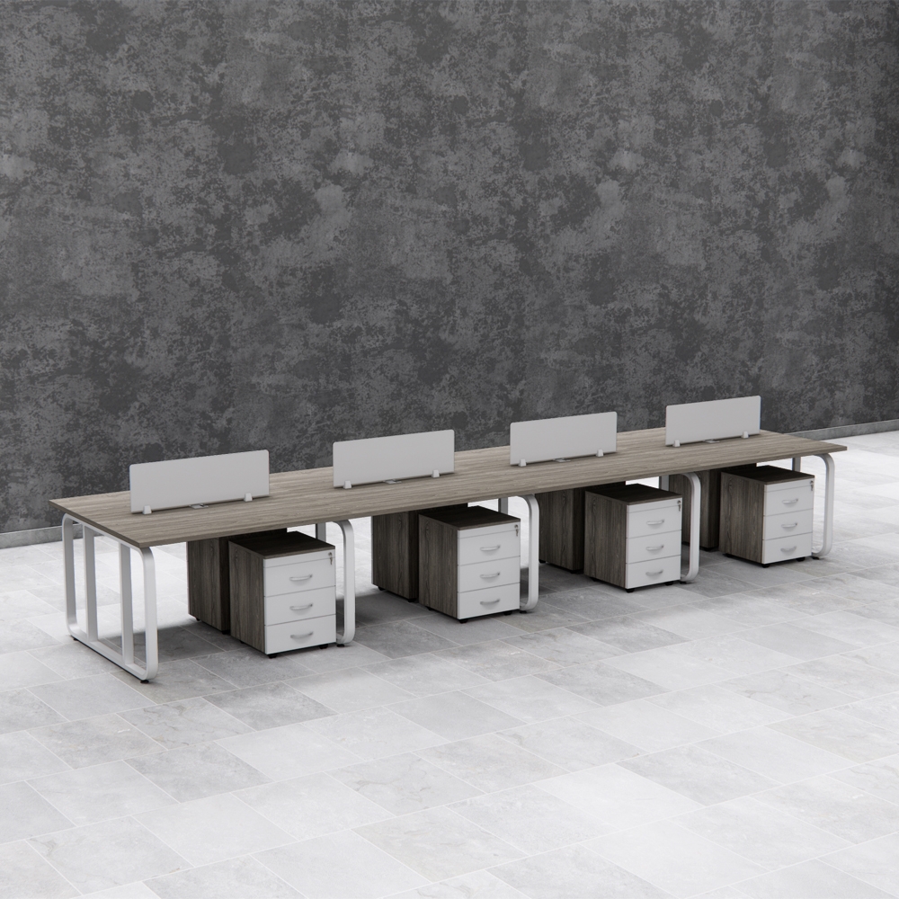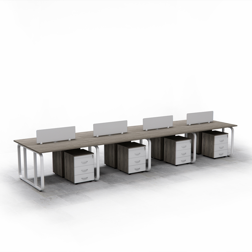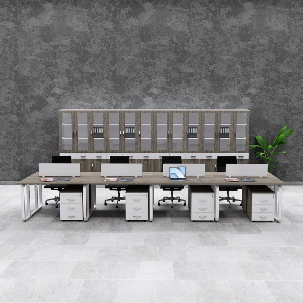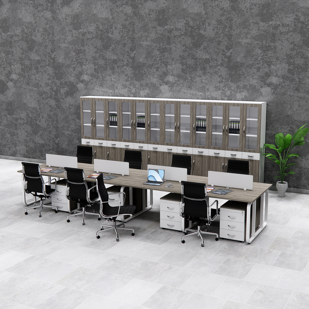 Tối ưu hóa không gian: Thiết kế cụm bàn liên hoàn cho 8 người ngồi, phù hợp với văn phòng đông nhân sự, giúp sắp xếp khoa học và tiết kiệm diện tích.
