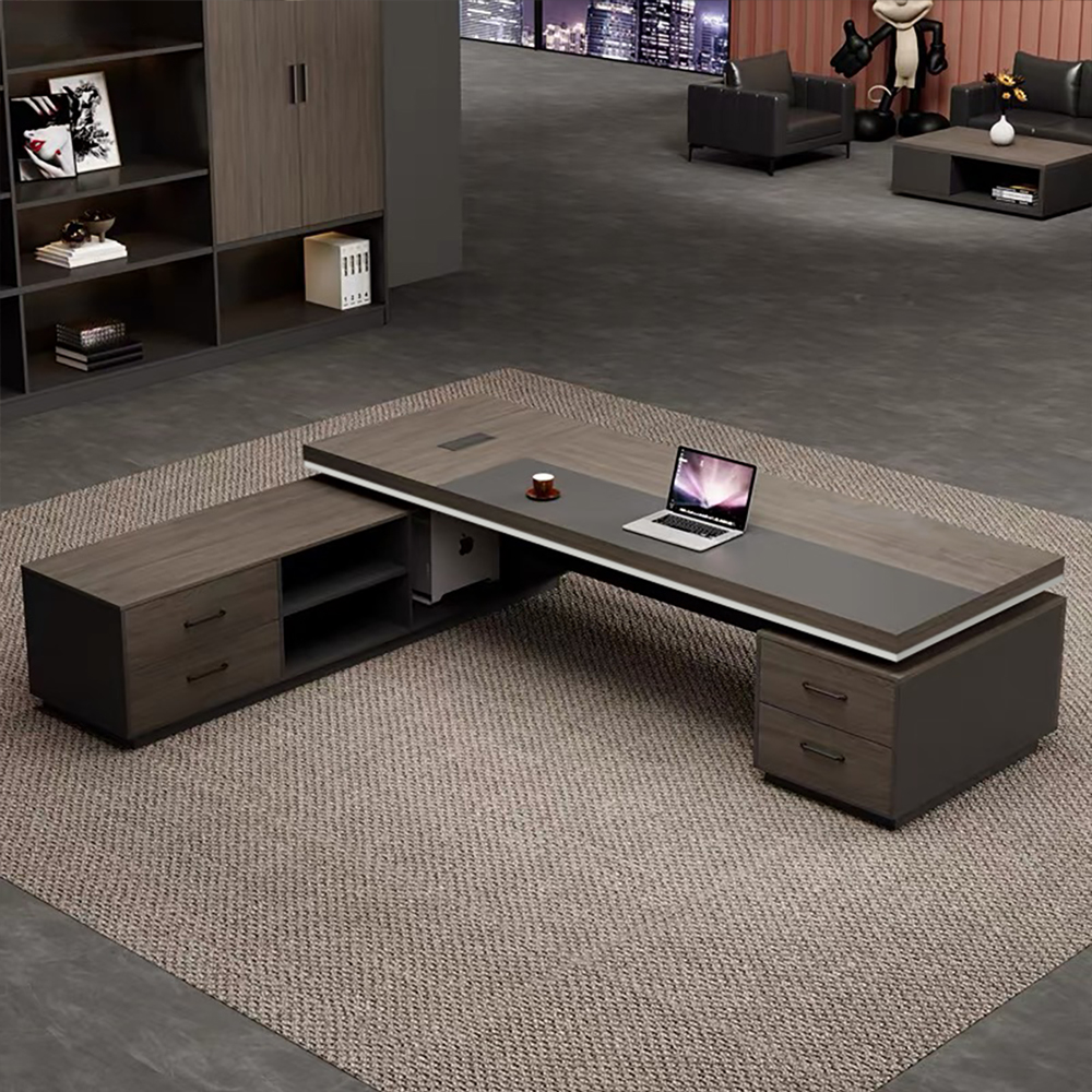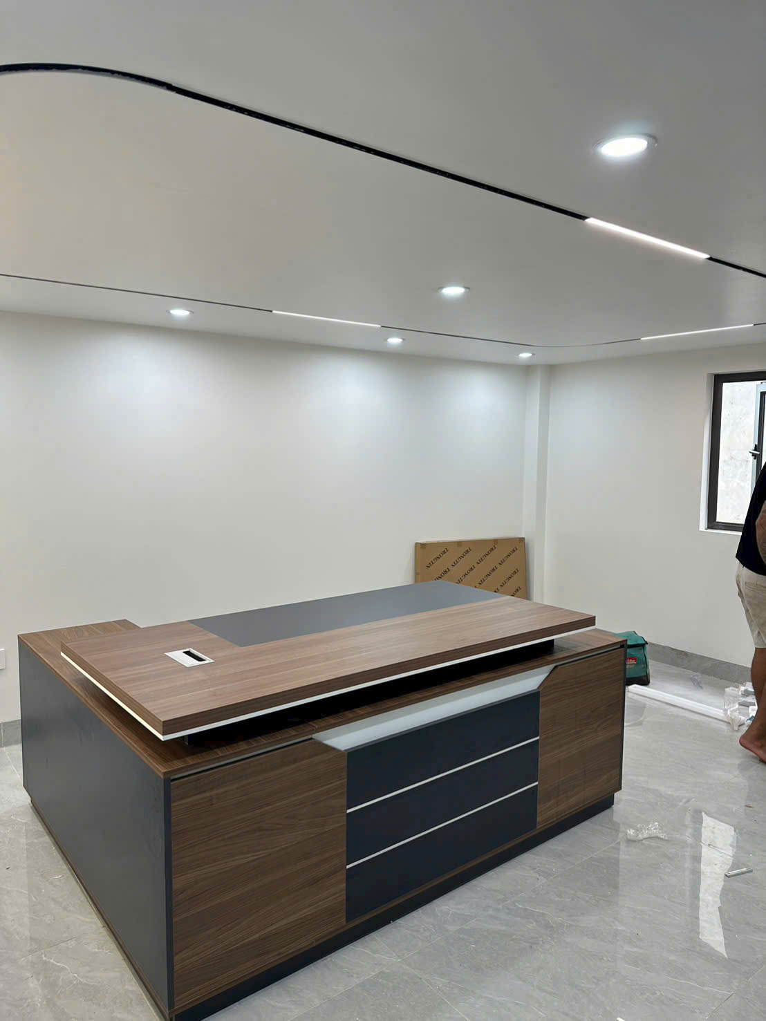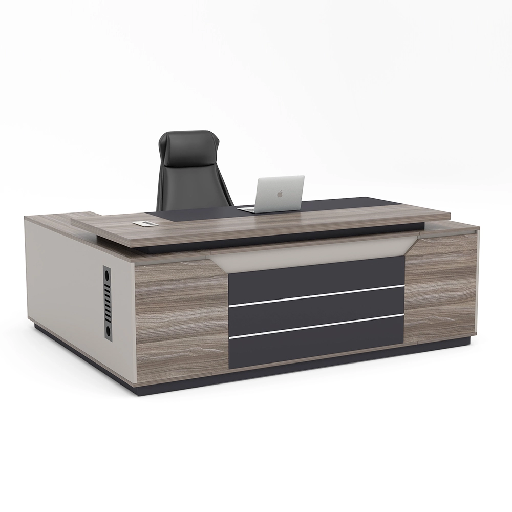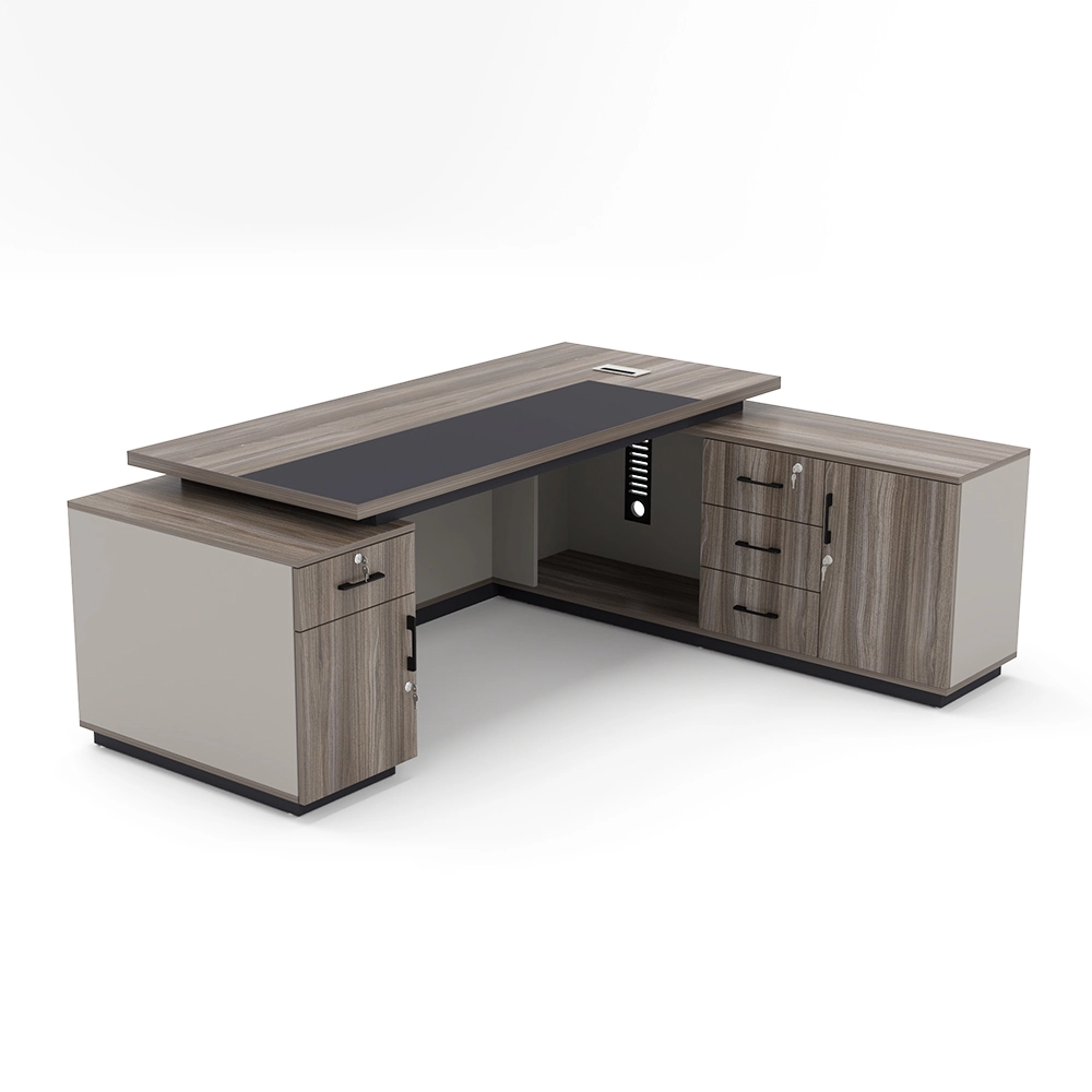 Bàn giám đốc FGBGD066 hiện có phối màu gỗ sẫm kết hợp xám hiện đại, phù hợp với nhiều không gian nội thất chuyên nghiệp. Ngoài ra, khách hàng có thể yêu cầu thay đổi màu sắc phù hợp với phong cách thương hiệu hoặc thiết kế tổng thể của văn phòng.