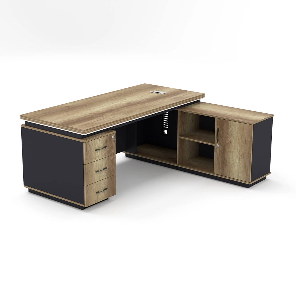 Tủ phụ có chiều dài 160 cm, tích hợp nhiều ngăn chứa giúp lưu trữ tài liệu, thiết bị văn phòng hoặc vật dụng cá nhân hiệu quả. Tủ đặt lệch bên trái, thuận tiện cho người ngồi làm việc và giữ khu vực bàn chính luôn thông thoáng.