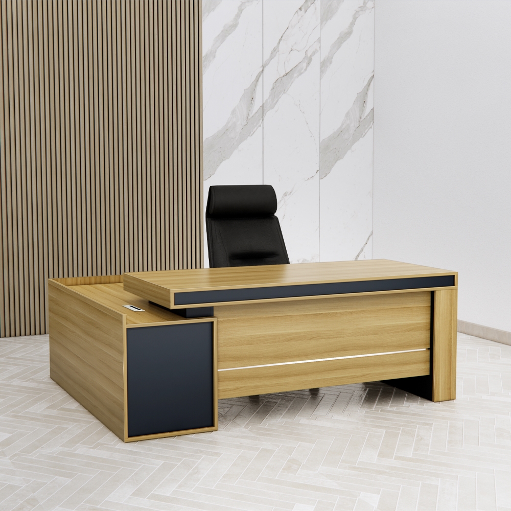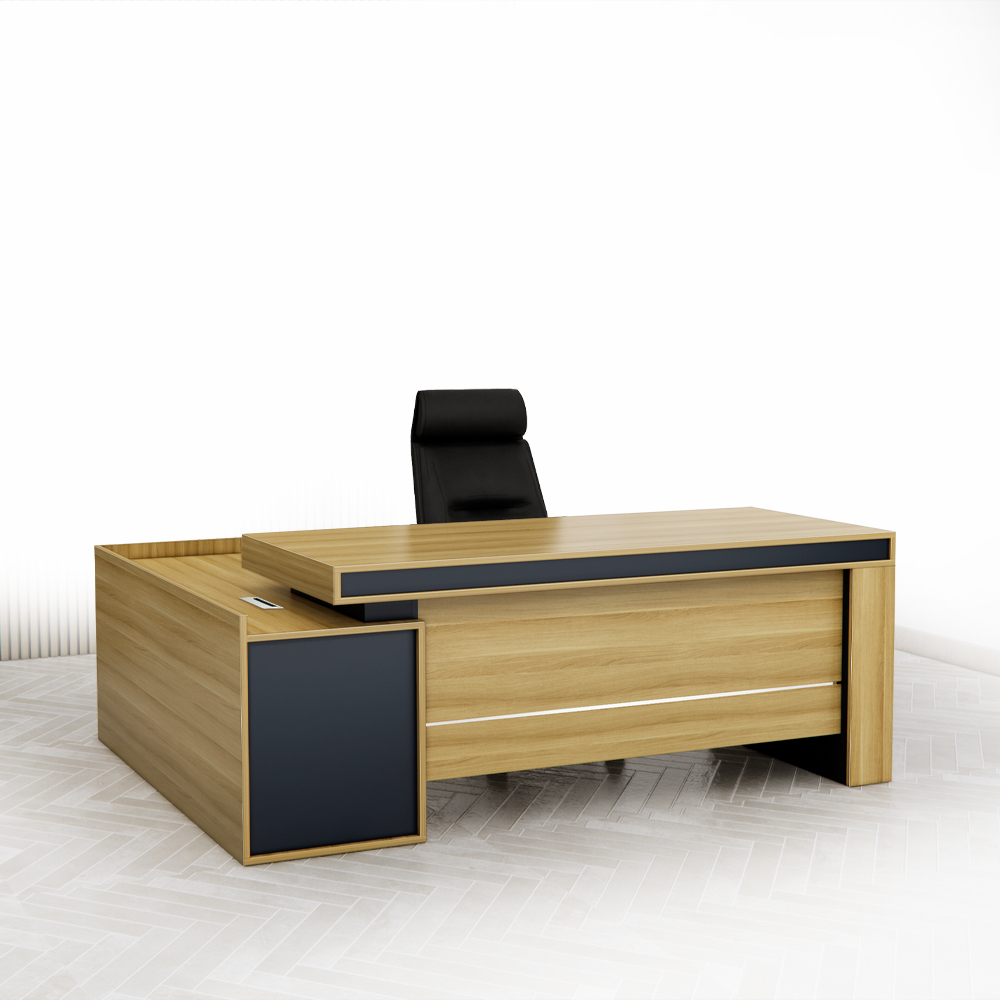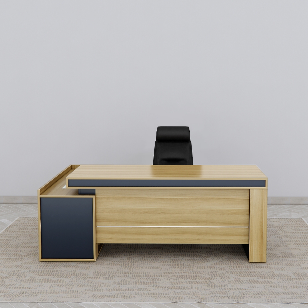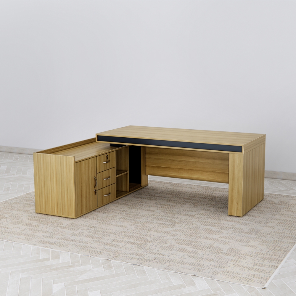 Bàn tích hợp tủ phụ và ngăn kéo tiện dụng, tạo nên không gian lưu trữ khoa học và tiết kiệm diện tích. Thiết kế hướng đến hiệu quả làm việc, giúp môi trường văn phòng luôn ngăn nắp và tối ưu hóa quy trình công việc hàng ngày.