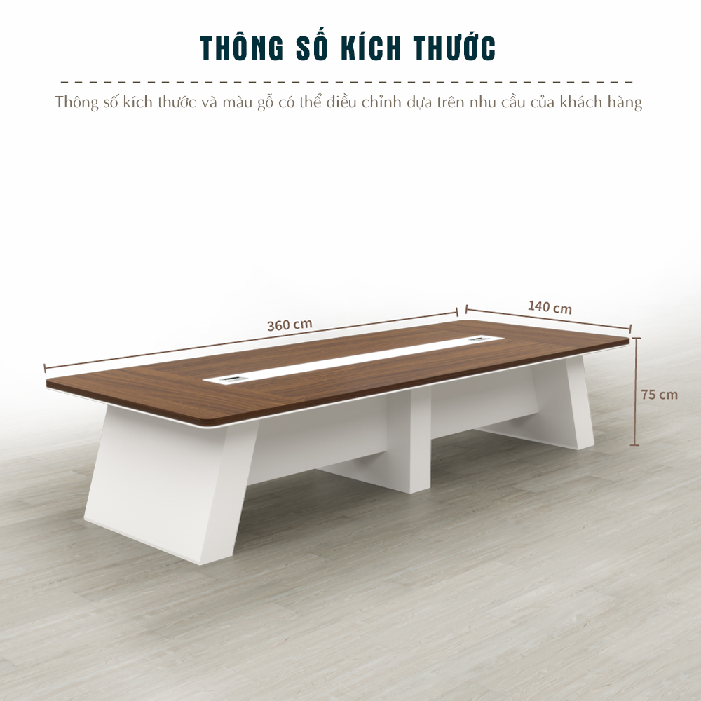 Mặt bàn rộng rãi, dễ dàng sắp xếp máy tính, tài liệu, thiết bị họp