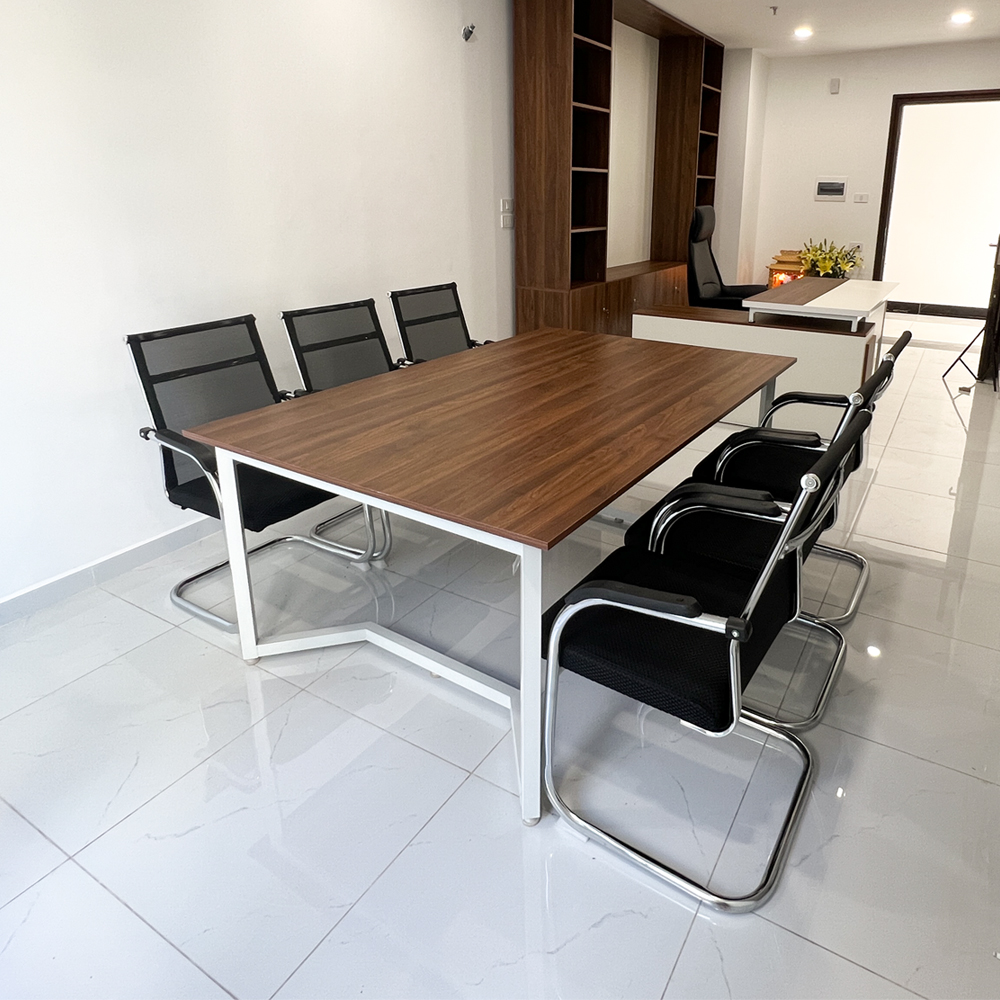 Kết cấu vững chắc, chịu lực tốt, phù hợp cho các buổi họp dài với nhiều thiết bị đi kèm như máy chiếu, laptop.