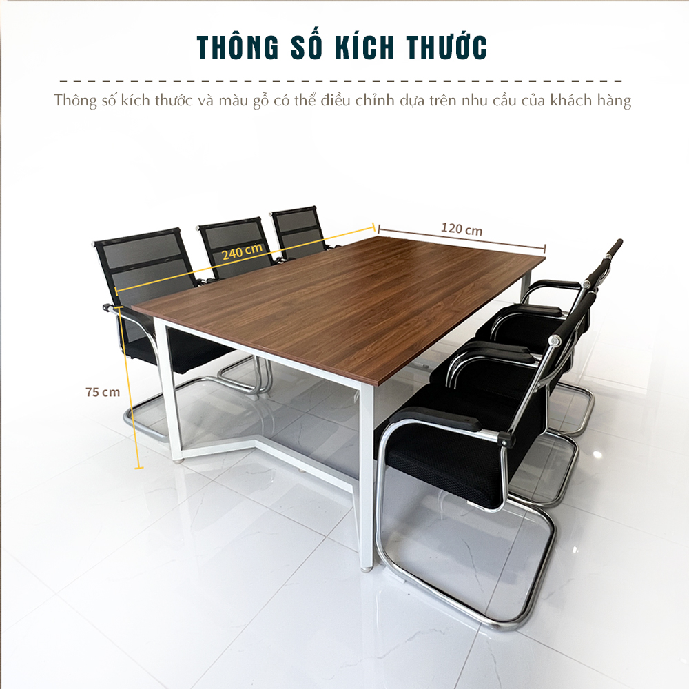 Kích thước tổng thể: Dài 240 cm × Rộng 120 cm × Cao 75 cm – phù hợp cho 6 đến 8 người ngồi thoải mái.
