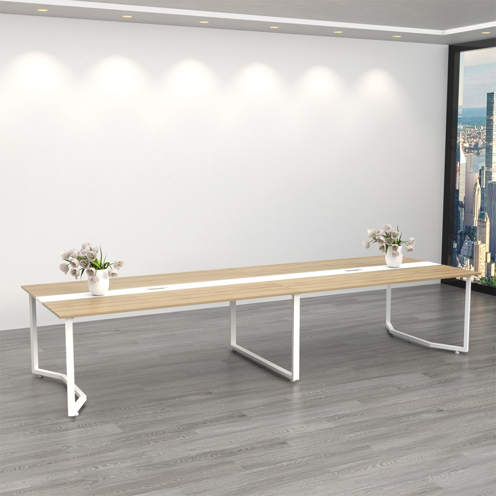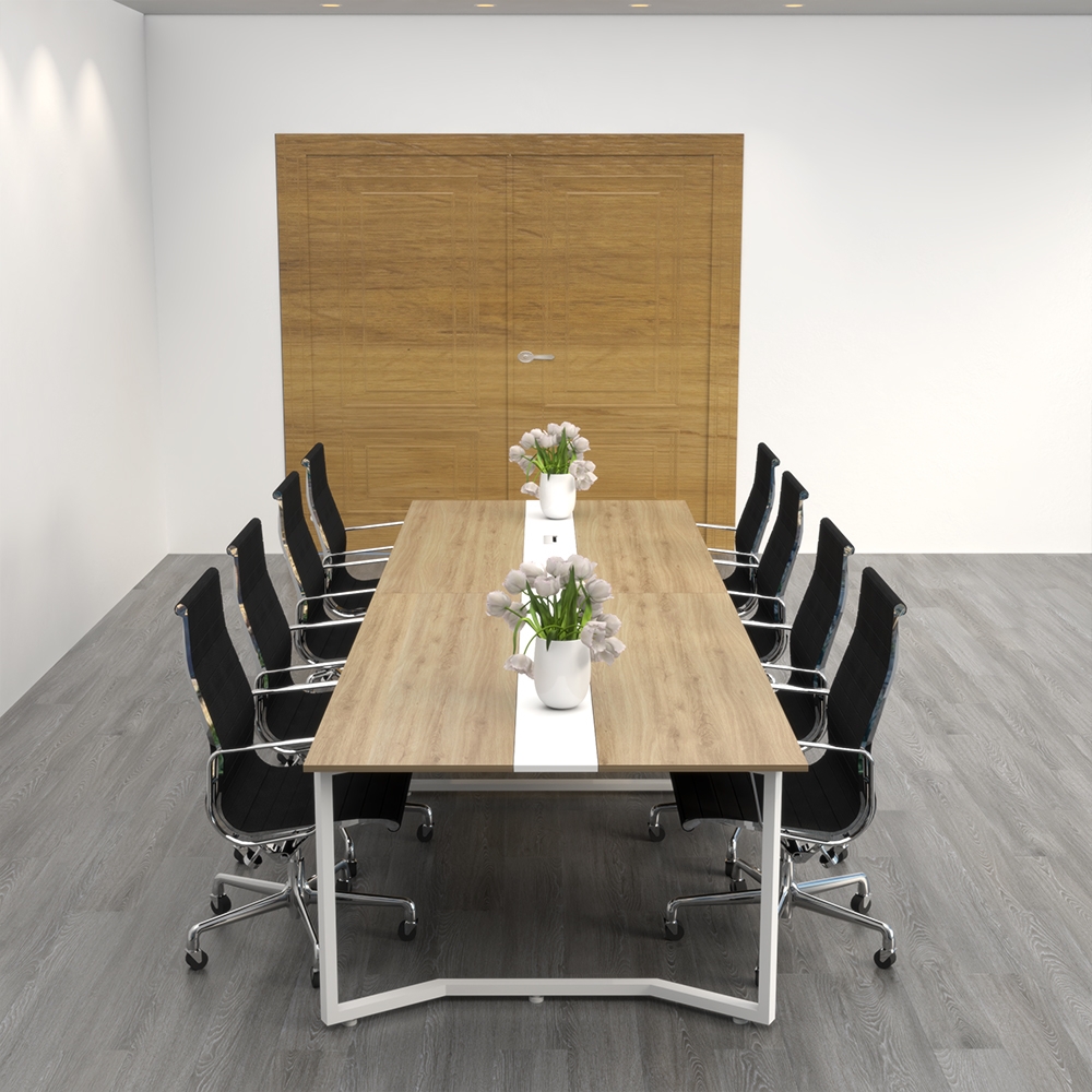 Bàn họp FGBH027 là lựa chọn tối ưu cho các văn phòng hiện đại ưa chuộng phong cách tối giản nhưng vẫn đảm bảo công năng và tính thẩm mỹ. Sản phẩm được sản xuất từ gỗ MDF phủ Melamin chất lượng cao, bề mặt vân gỗ sáng tự nhiên kết hợp cùng chân sắt sơn tĩnh điện trắng, phù hợp nhiều không gian làm việc mở.
