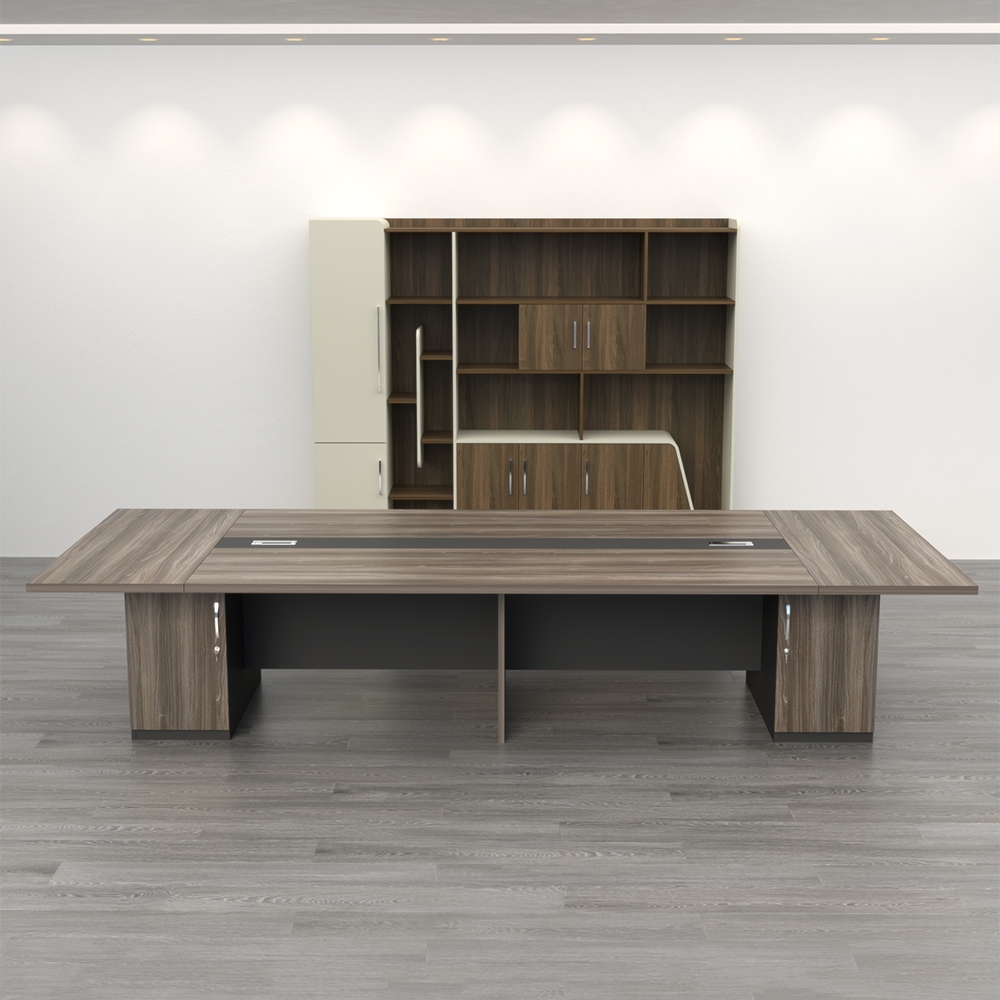 Tích hợp ngăn tủ kín đáo: Hai đầu bàn bố trí hộc tủ có khóa, thuận tiện cất giữ vật dụng văn phòng hoặc tài liệu họp