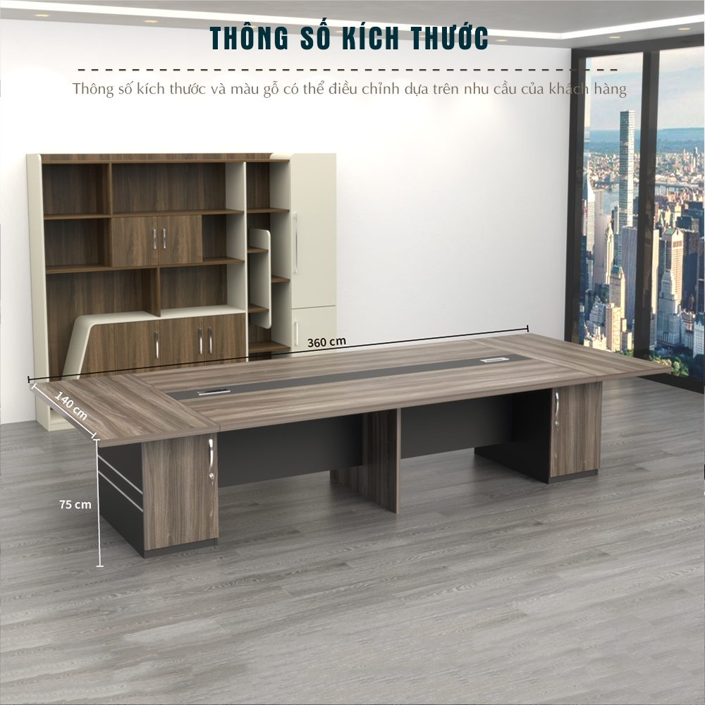 Bố cục rộng rãi: Với chiều dài 3m6, bàn đáp ứng tốt nhu cầu họp nhóm từ 10 đến 14 người, tạo sự thoải mái khi trao đổi ý kiến