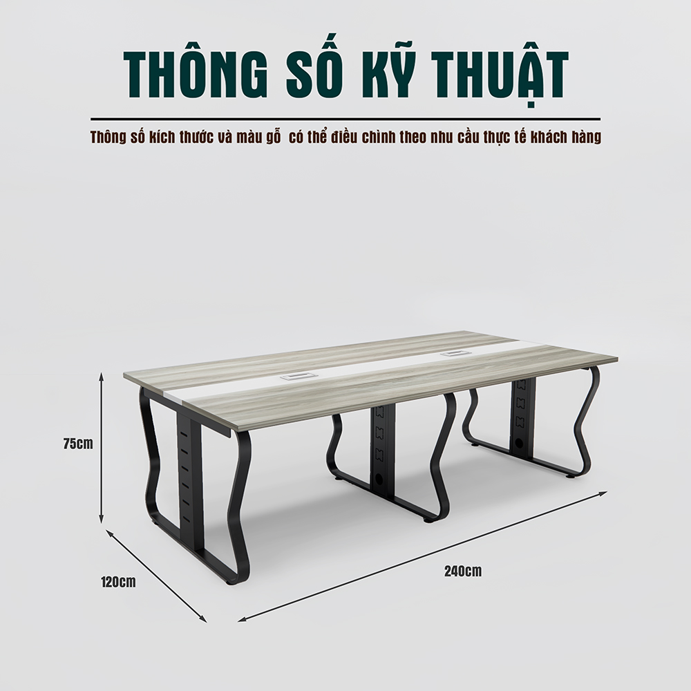 Phù hợp nhóm họp từ 6–8 người: Kích thước bàn vừa phải, lý tưởng cho các buổi họp nhóm nhanh hoặc không gian họp diện tích trung bình