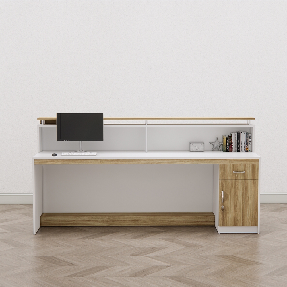 Bàn lễ tân FGQLT03 được tích hợp hệ thống ngăn kéo và tủ kệ đa năng, giúp lưu trữ vật dụng cần thiết một cách ngăn nắp và thuận tiện. Nhân viên lễ tân có thể tổ chức công việc hiệu quả nhờ vào không gian lưu trữ rộng rãi và sắp xếp khoa học.
