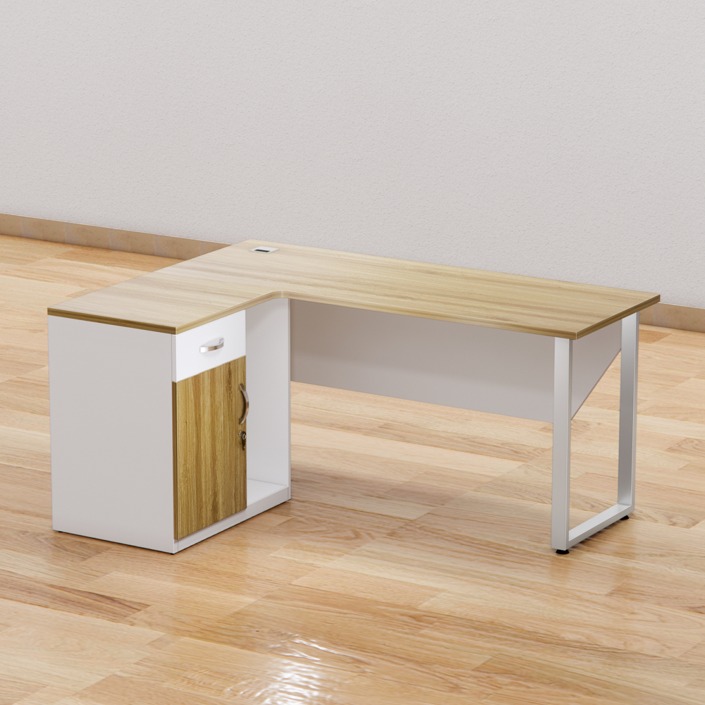 Thiết kế: Kiểu chữ L góc trái, tích hợp hộc tủ tiện lợi gồm ngăn kéo và khoang khóa
