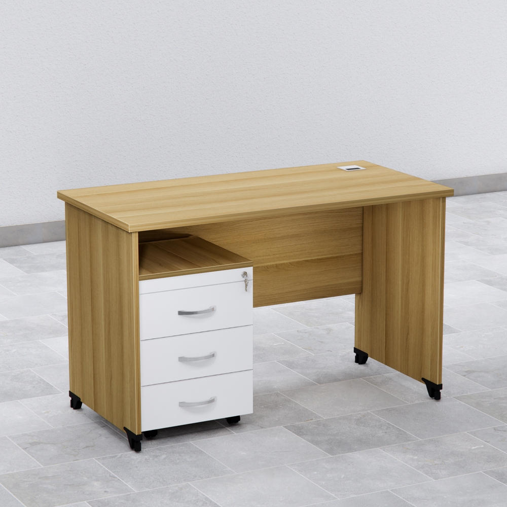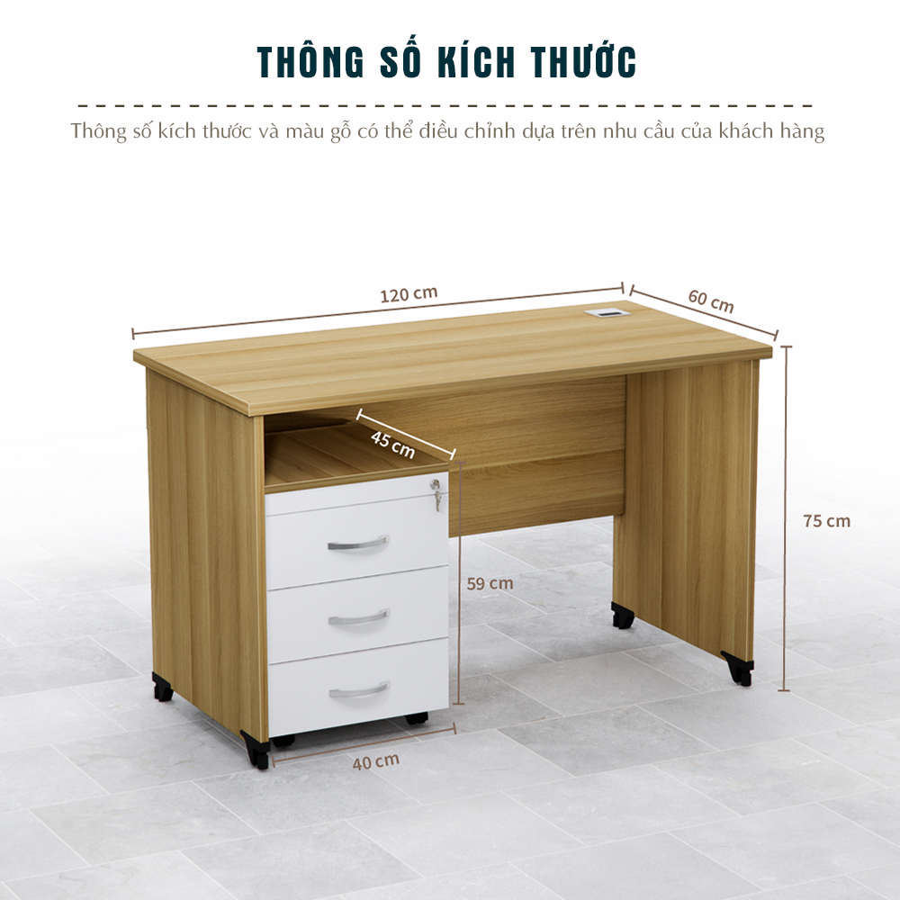 Thẩm mỹ và ứng dụng cao: Phối màu hài hòa giữa vân gỗ và trắng giúp bàn dễ kết hợp với các loại ghế văn phòng và nội thất hiện đại khác.