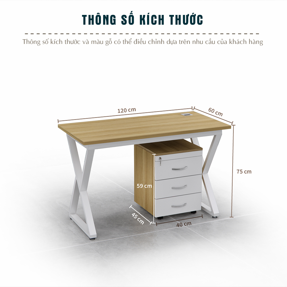 Tăng tính thẩm mỹ: Màu vân gỗ sáng kết hợp cùng khung chân trắng tạo nên vẻ ngoài trẻ trung, phù hợp nhiều không gian văn phòng