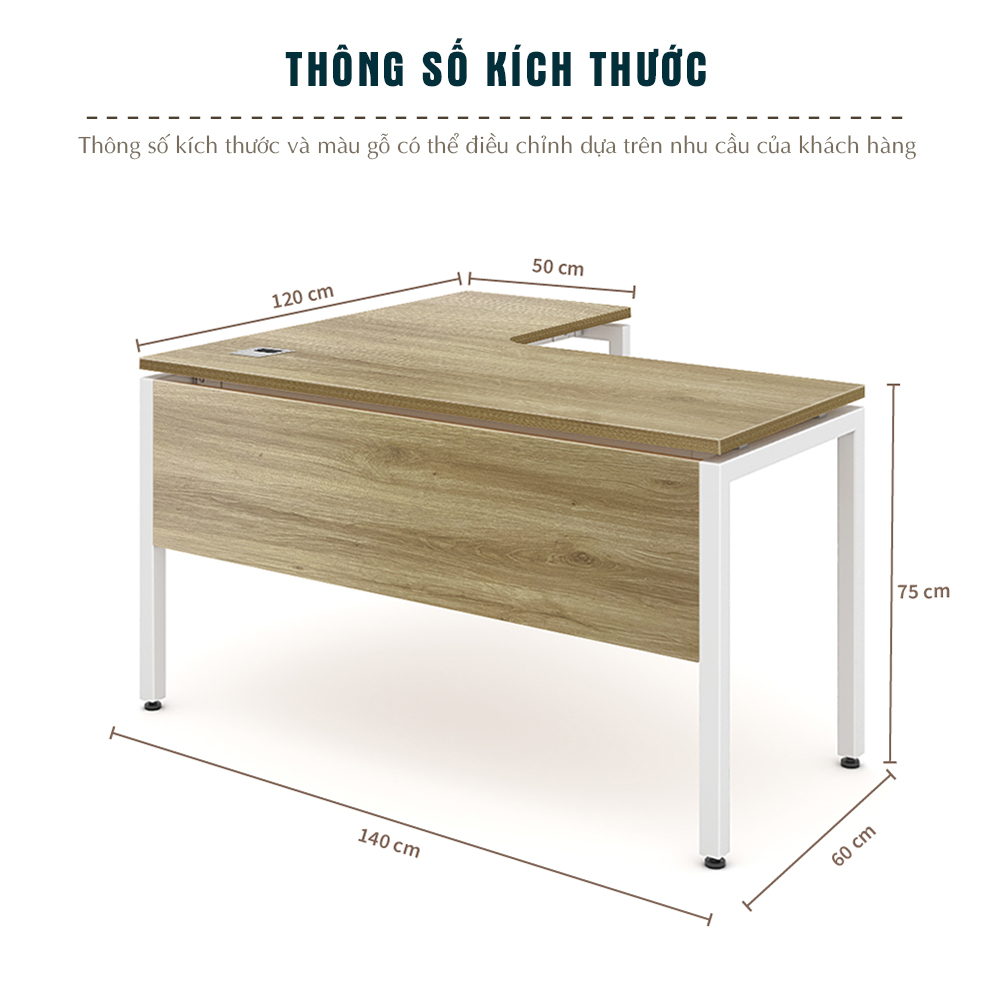 Tông màu: Vân gỗ sáng, dễ phối với các nội thất hiện đại khác như ghế xoay, tủ tài liệu, vách ngăn