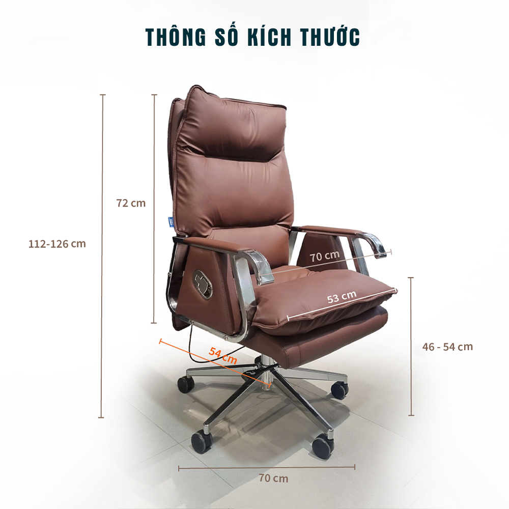 - Chất liệu da cao cấp: Ghế được bọc da màu nâu mềm mại, bền bỉ, tạo nên sự sang trọng và dễ dàng vệ sinh, đảm bảo độ bền lâu dài.