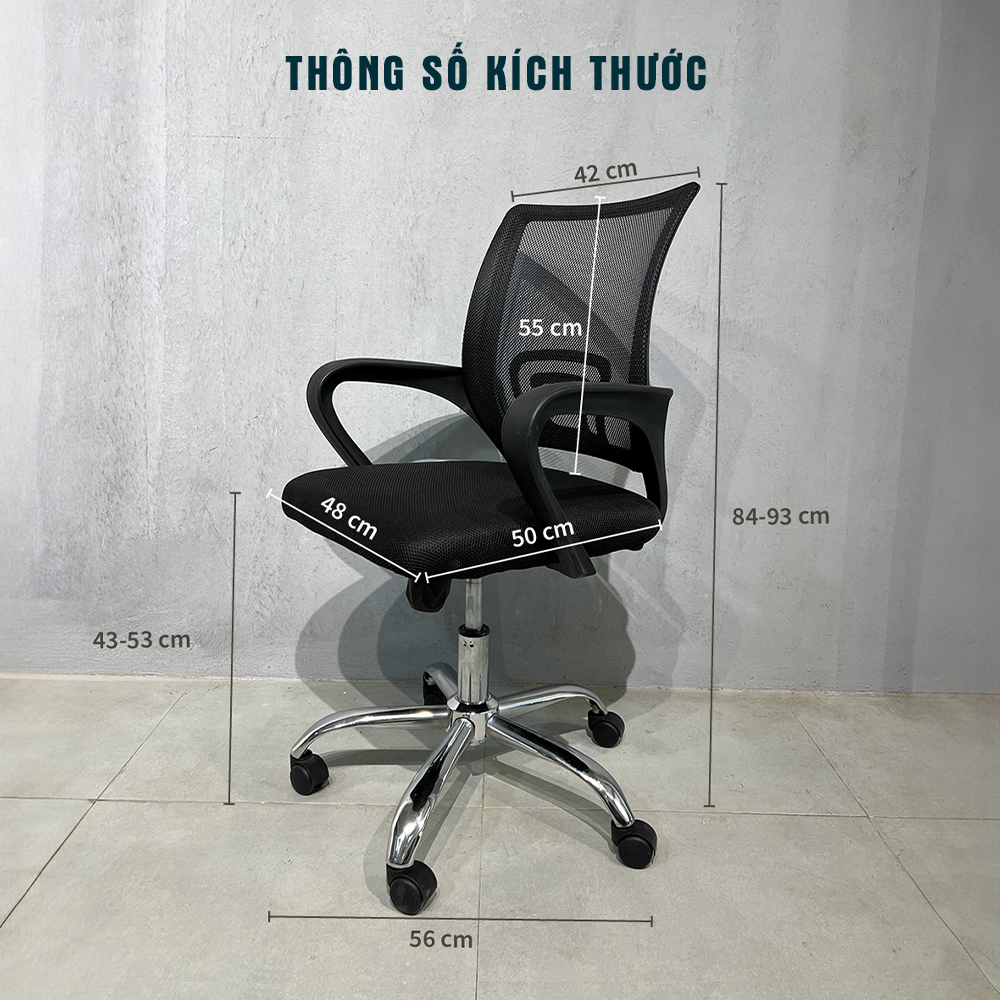 Chân ghế xoay và điều chỉnh độ cao: Chân ghế có khả năng xoay 360 độ, cho phép người dùng dễ dàng di chuyển mà không cần đứng dậy. Tính năng điều chỉnh độ cao linh hoạt giúp ghế phù hợp với nhiều kích thước bàn làm việc và chiều cao người dùng.