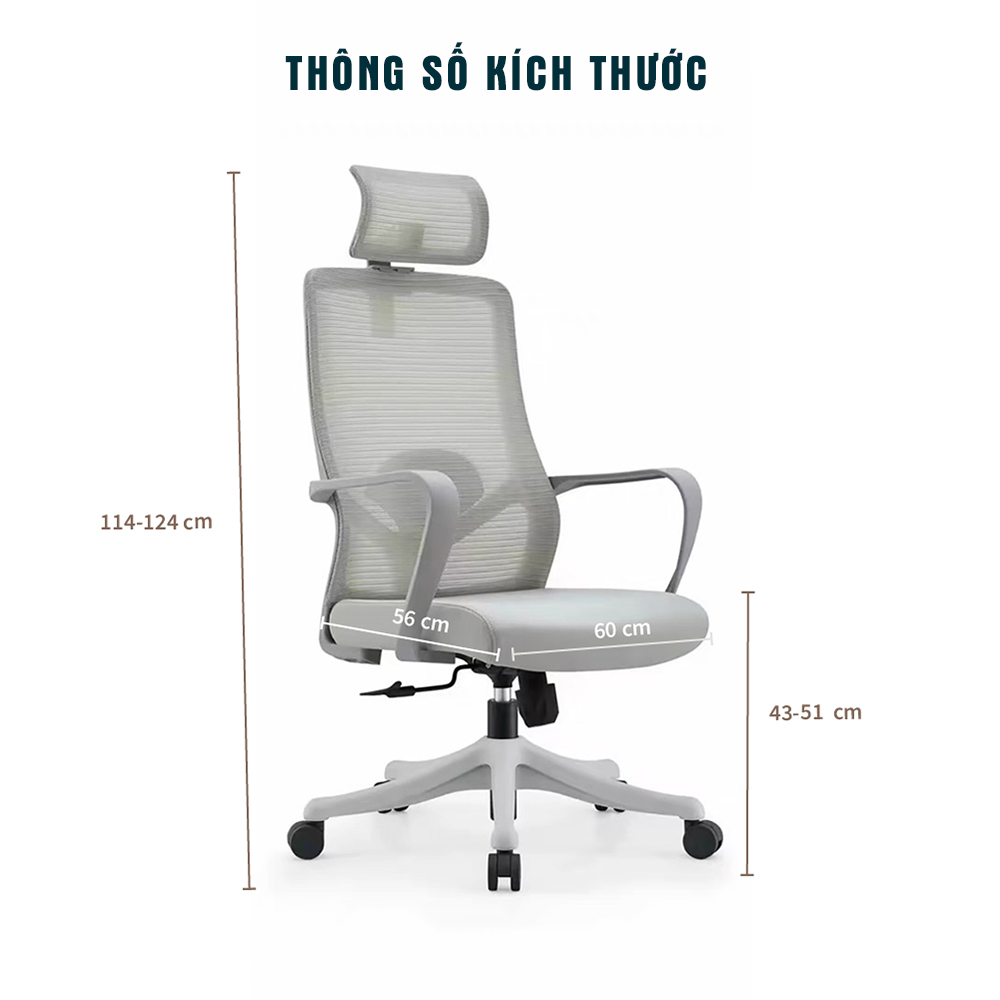 Thiết kế lưng lưới thoáng khí: Tựa lưng được làm từ chất liệu lưới cao cấp, giúp tăng cường khả năng thoáng khí, giữ lưng người ngồi luôn mát mẻ và dễ chịu, đặc biệt trong môi trường làm việc kéo dài.
