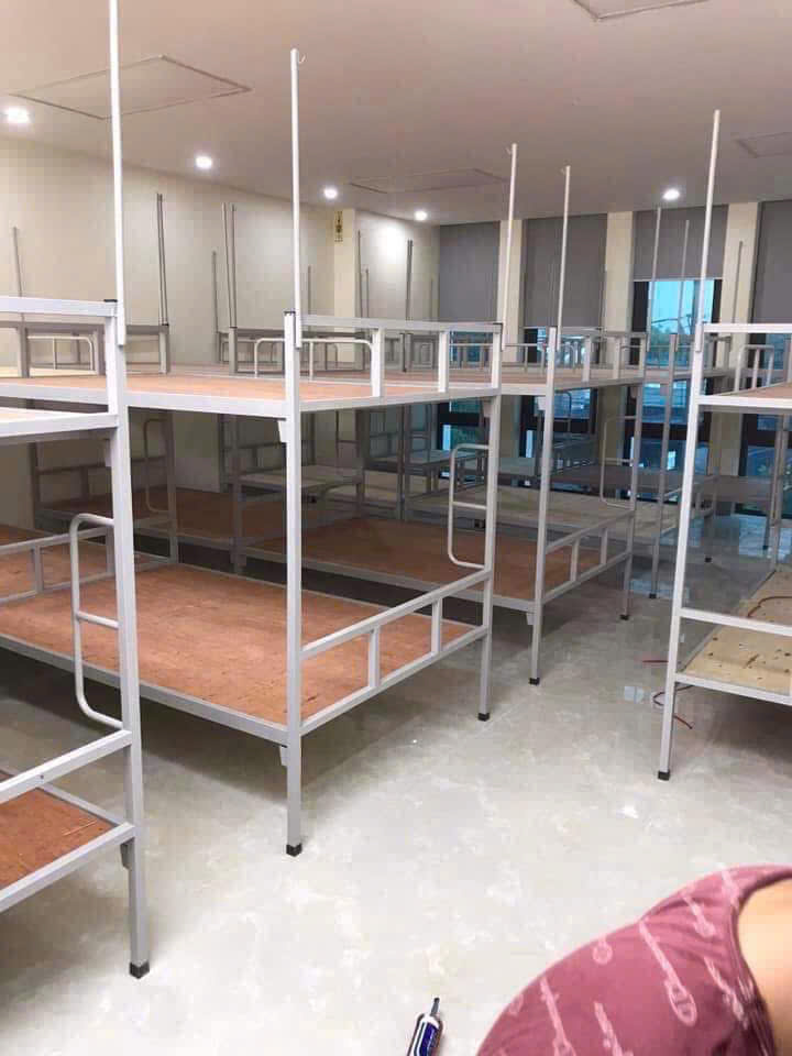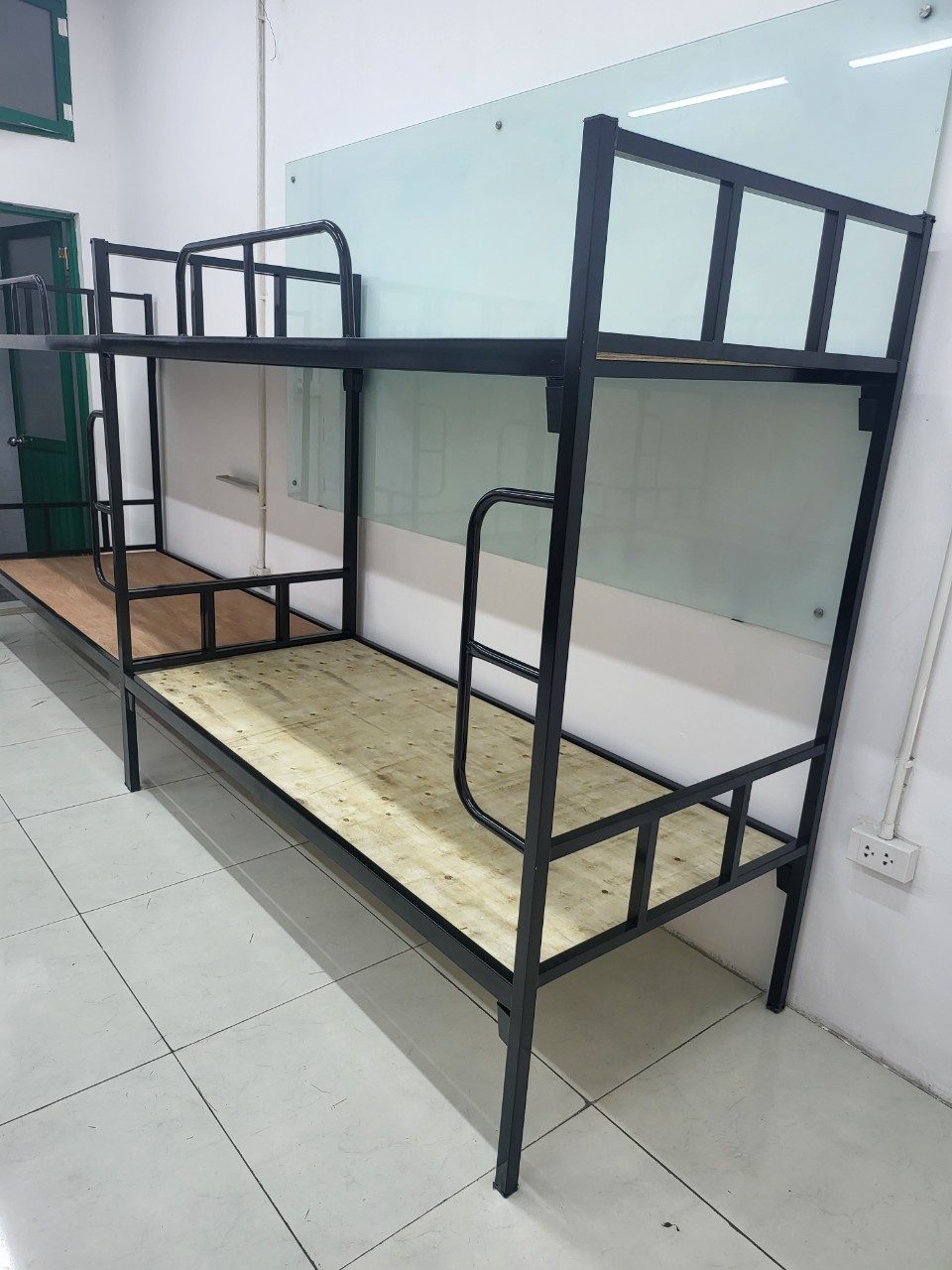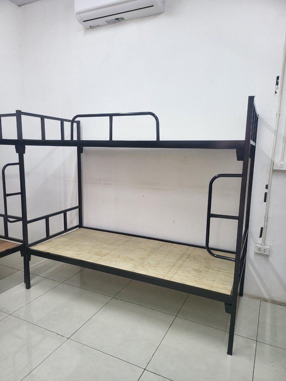 – Giường sắt 2 tầng kích thước cao 1m65 x dài 1m90 x rộng 0.85m (cả phủ bì)