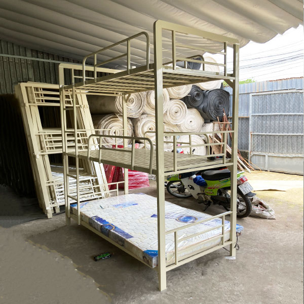 Thiết kế: Thường có cấu trúc kiên cố, chịu lực tốt, mỗi tầng giường được thiết kế để có thể chịu được trọng lượng người nằm mà không bị biến dạng.