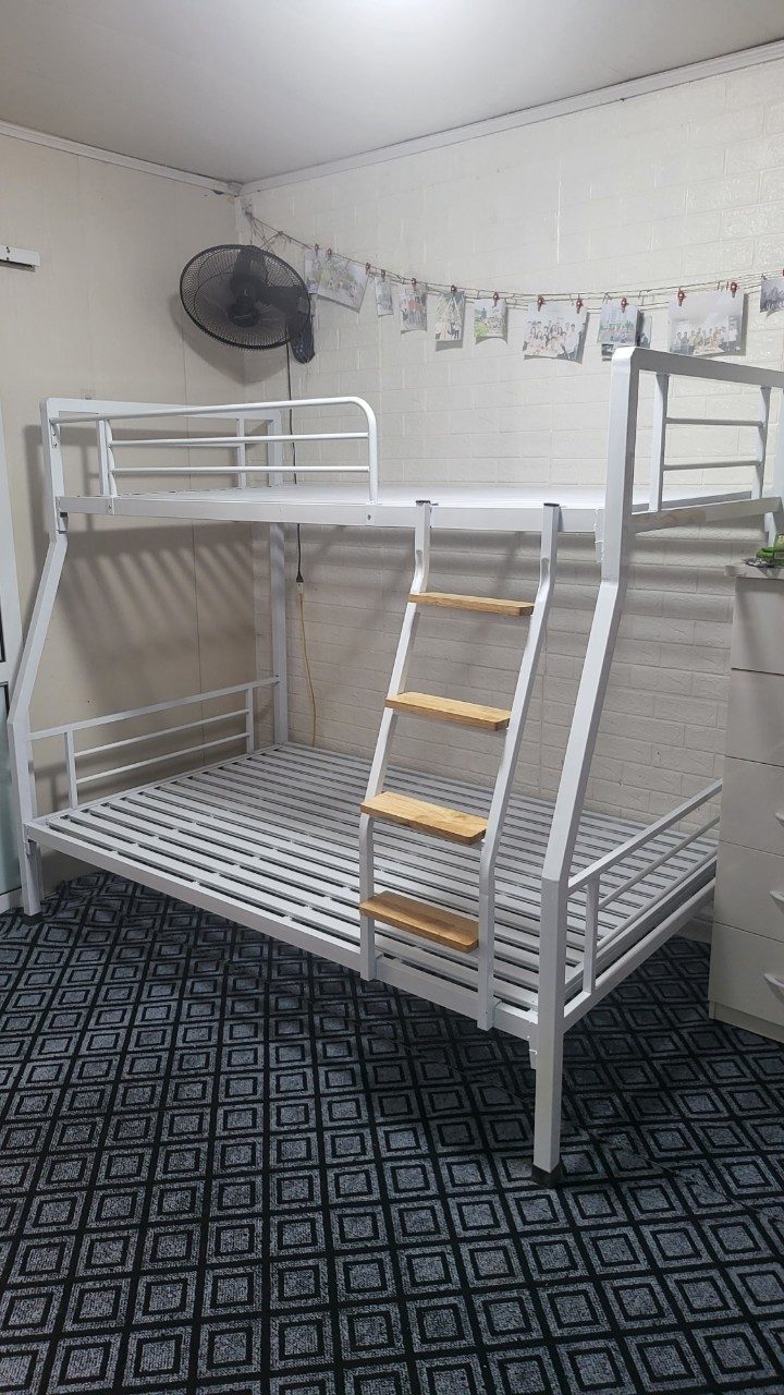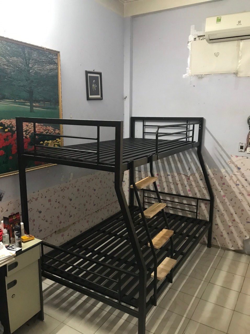 Hình ảnh thực tế của mẫu Giường tầng sắt lệch tầng 1m2 do BK Home lắp đặt