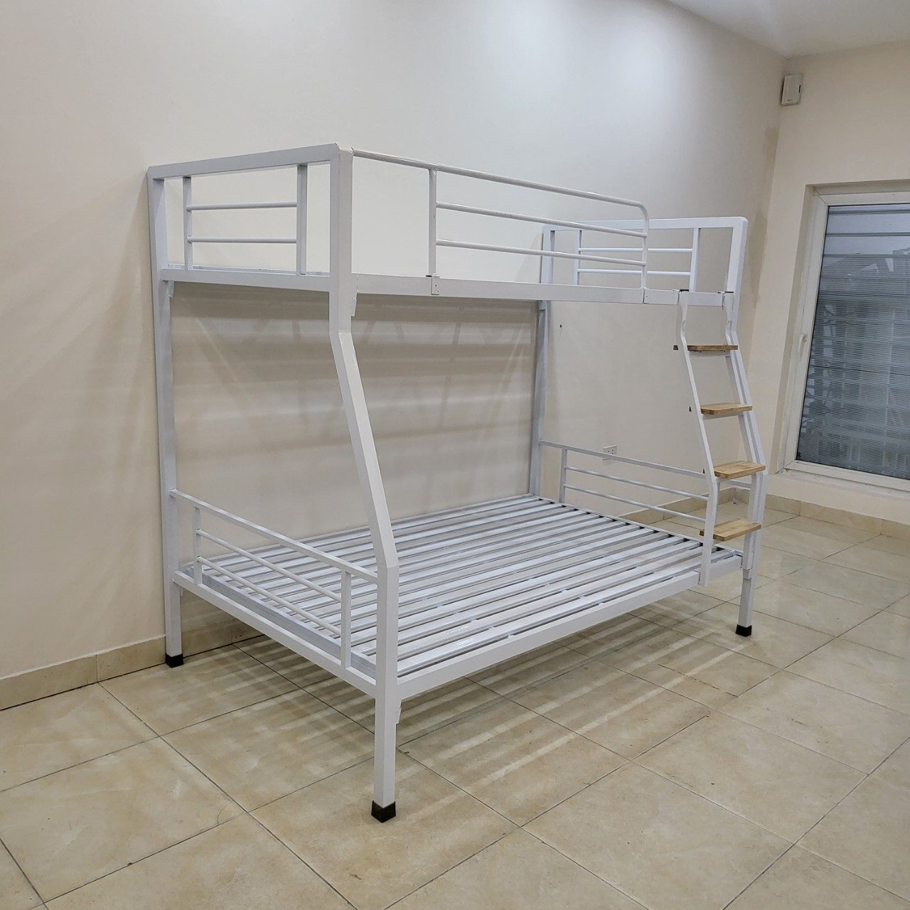 - Giường sắt lệch tầng 1m2 do lệch tầng nên kiểu thang leo rất tối ưu, leo tầng 2 vô cùng dễ dàng và an toàn, thích hợp cho phòng ngủ, gia đình hoặc BK Home, đa dạng kích thước sẽ làm cho không gian của bạn sẽ gọn gàng và tiện nghi hơn. Thích hợp cho nhà trọ, khu ký túc xá, khu tập thể công nhân, trường du học và xuất khẩu lao động, sử dụng cho phòng trọ mang lại không gian gọn gàng tiện dụng.