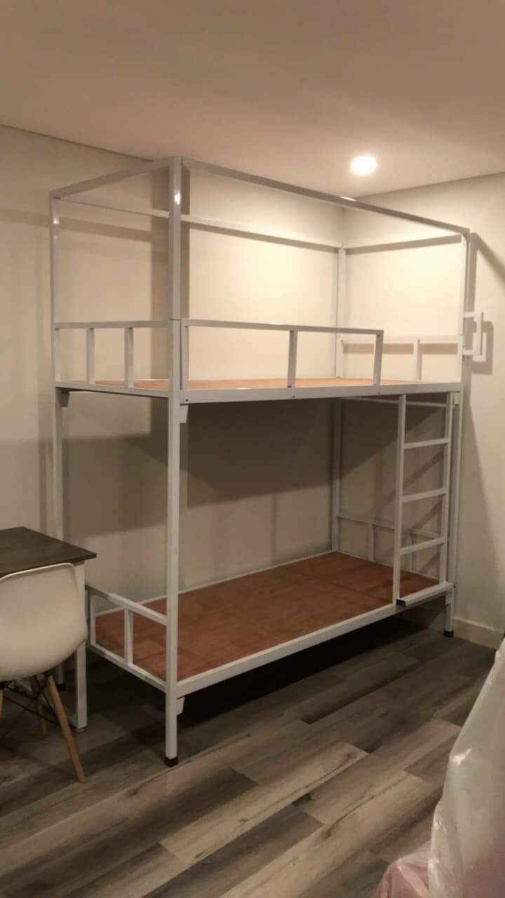 - Giường sắt 2 tầng BK Home dùng thang chữ H tối ưu, leo tầng 2 vô cùng dễ dàng và an toàn, thích hợp cho phòng ngủ, gia đình hoặc BK Home, đa dạng kích thước sẽ làm cho không gian của bạn sẽ gọn gàng và tiện nghi hơn. Thích hợp cho nhà trọ, khu ký túc xá, khu tập thể công nhân, trường du học và xuất khẩu lao động, sử dụng cho phòng trọ mang lại không gian gọn gàng tiện dụng.