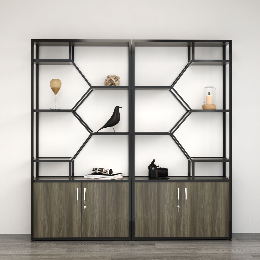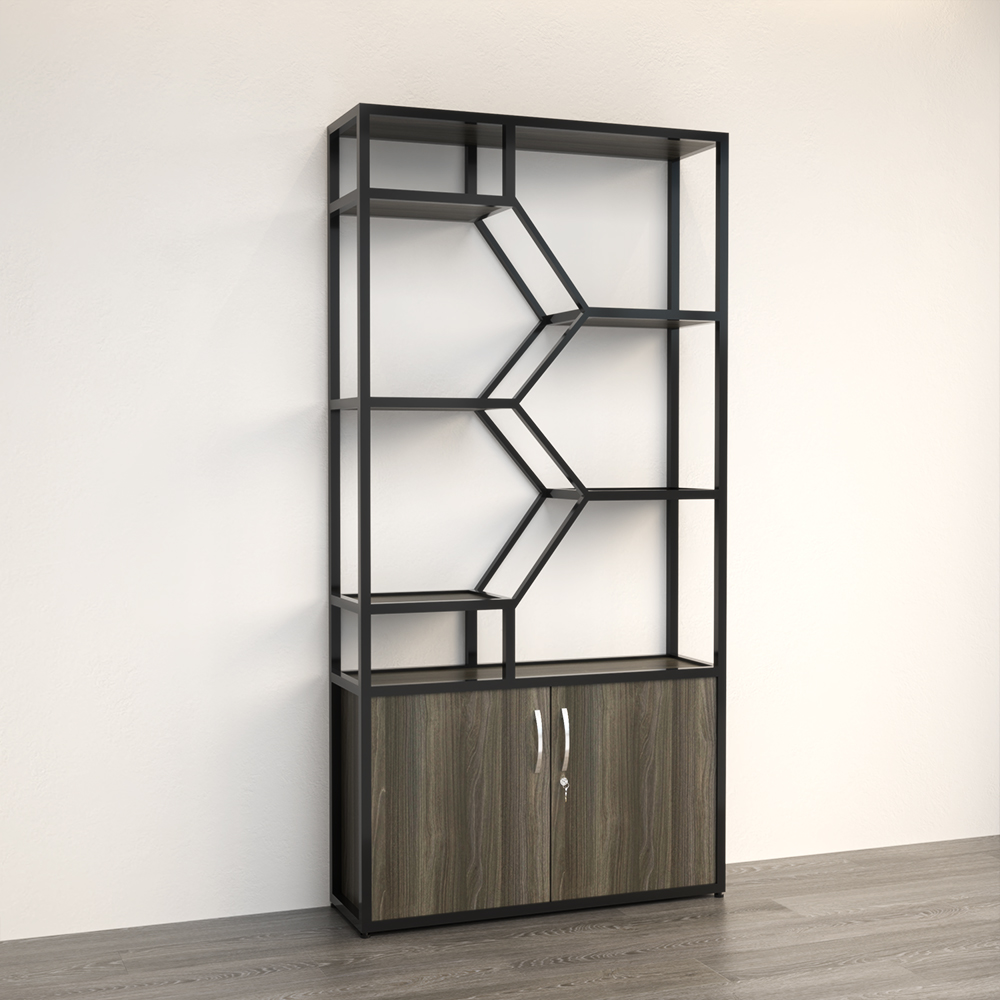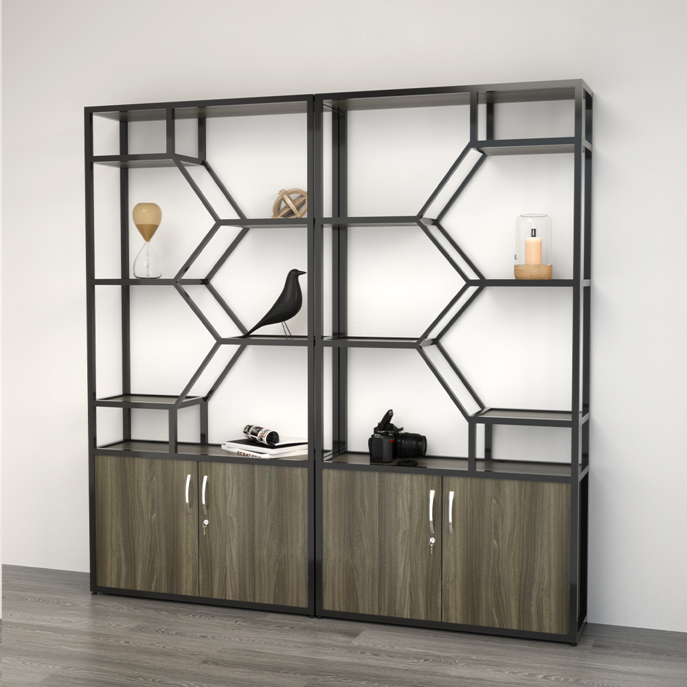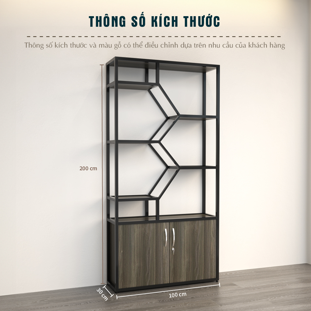 Kết hợp giữa không gian mở và tủ kín, phù hợp cả nhu cầu trưng bày và lưu trữ