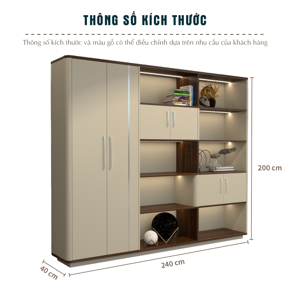 Kích thước tổng thể: Rộng 240cm x Cao 200cm x Sâu 40cm
