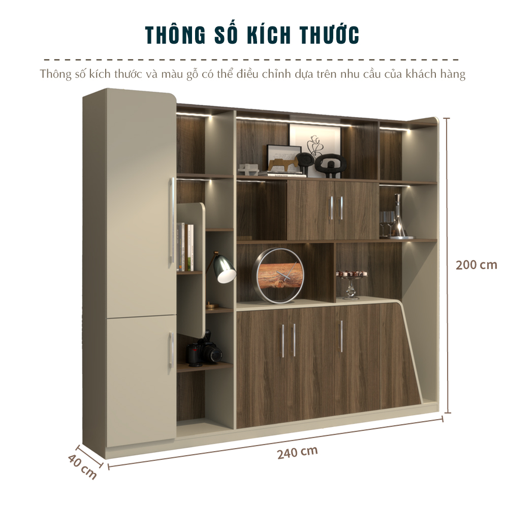 Kích thước tổng thể: Dài 240 cm × Cao 200 cm × Sâu 40 cm