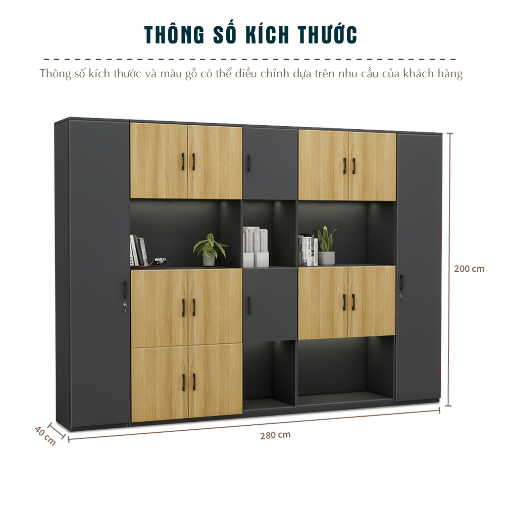 Không gian lưu trữ rộng: Với chiều dài lên đến 2m8, tủ phù hợp cho văn phòng có nhu cầu lưu trữ tài liệu, vật dụng lớn