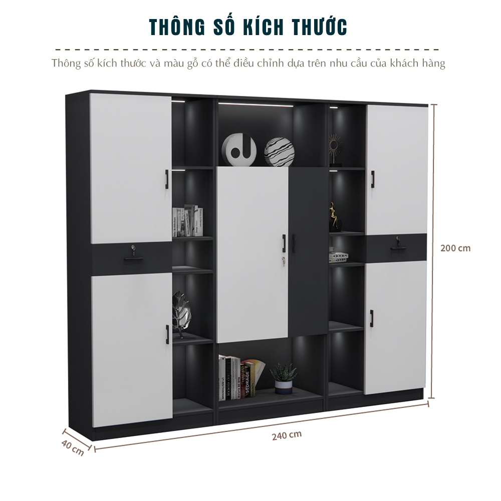• Kích thước:         Dài 240 cm × Cao 200 cm × Sâu 40 cm