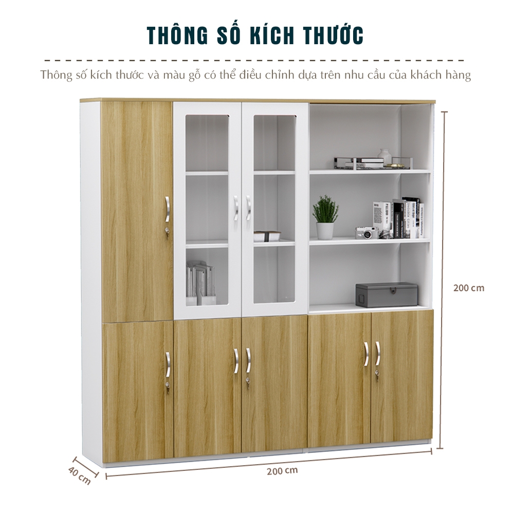 Dung tích lưu trữ lớn: Với chiều rộng 2m, sản phẩm phù hợp sử dụng tại các khu vực làm việc tập trung, phòng ban chức năng hoặc nơi cần trữ lượng tài liệu lớn