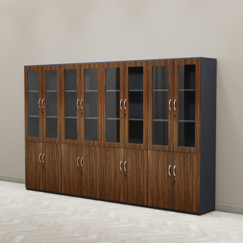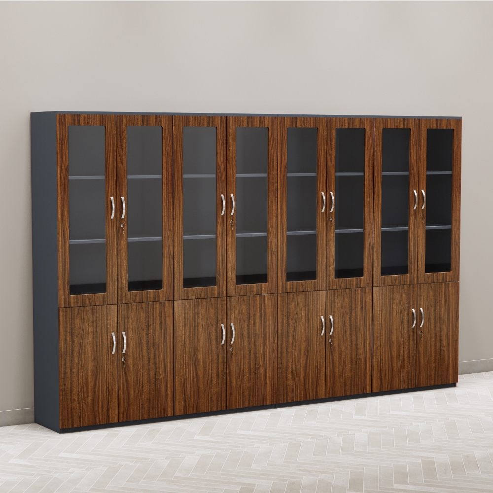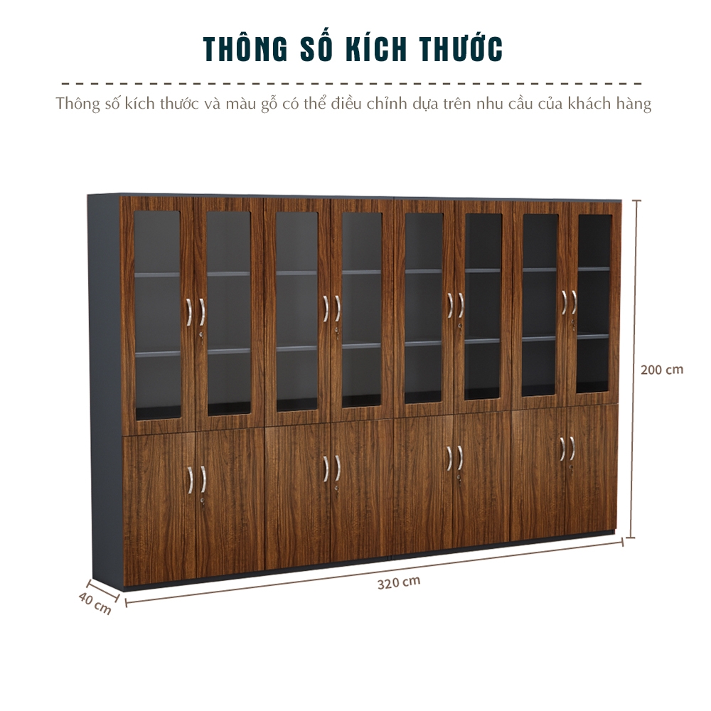 Tủ hồ sơ cao FGTHS13 là mẫu tủ có kích thước lớn, phù hợp với những văn phòng cần lưu trữ lượng hồ sơ, sổ sách lớn một cách khoa học. Với chiều dài lên đến 3m2, sản phẩm được chia thành 8 khoang đứng, mỗi khoang bao gồm một cánh kính ở trên và một cánh gỗ ở dưới. Thiết kế này không chỉ giúp người dùng dễ dàng quan sát và phân loại tài liệu mà còn tạo sự gọn gàng, đồng bộ cho không gian làm việc.