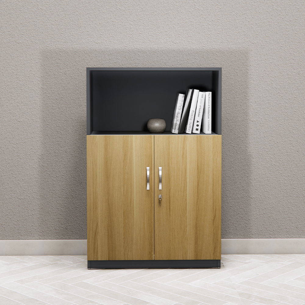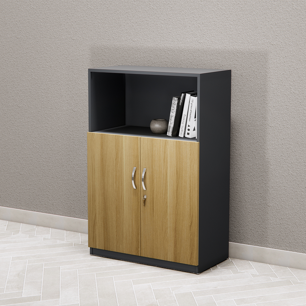 Thiết kế 2 trong 1: Phần kệ mở phía trên tiện lợi cho việc để sách, đồ trang trí hoặc tài liệu cần truy cập nhanh. Phần tủ cánh phía dưới giúp lưu trữ tài liệu bảo mật hiệu quả