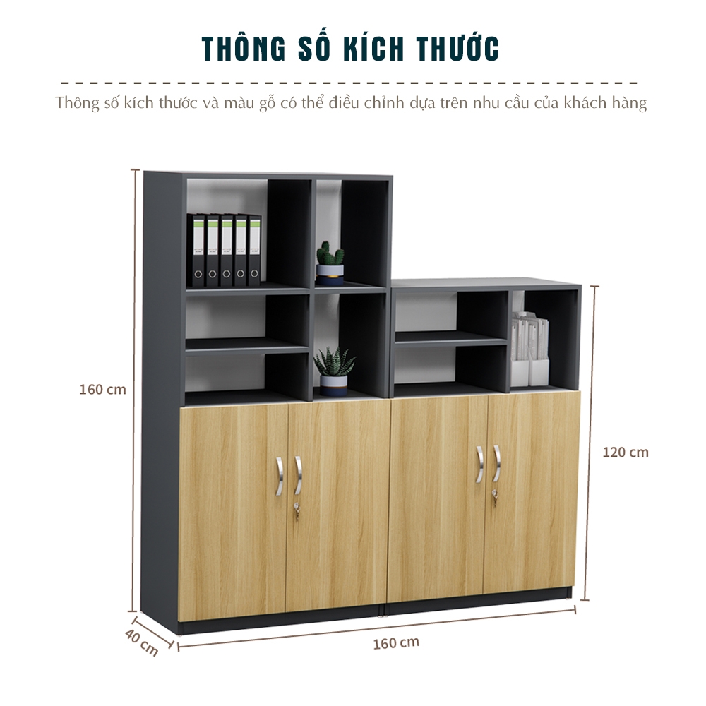 Lưu trữ hiệu quả: Khoang tủ dưới có khóa phù hợp cho hồ sơ bảo mật, phần kệ mở trên phù hợp để tài liệu tham khảo, cây trang trí hoặc vật dụng thường dùng